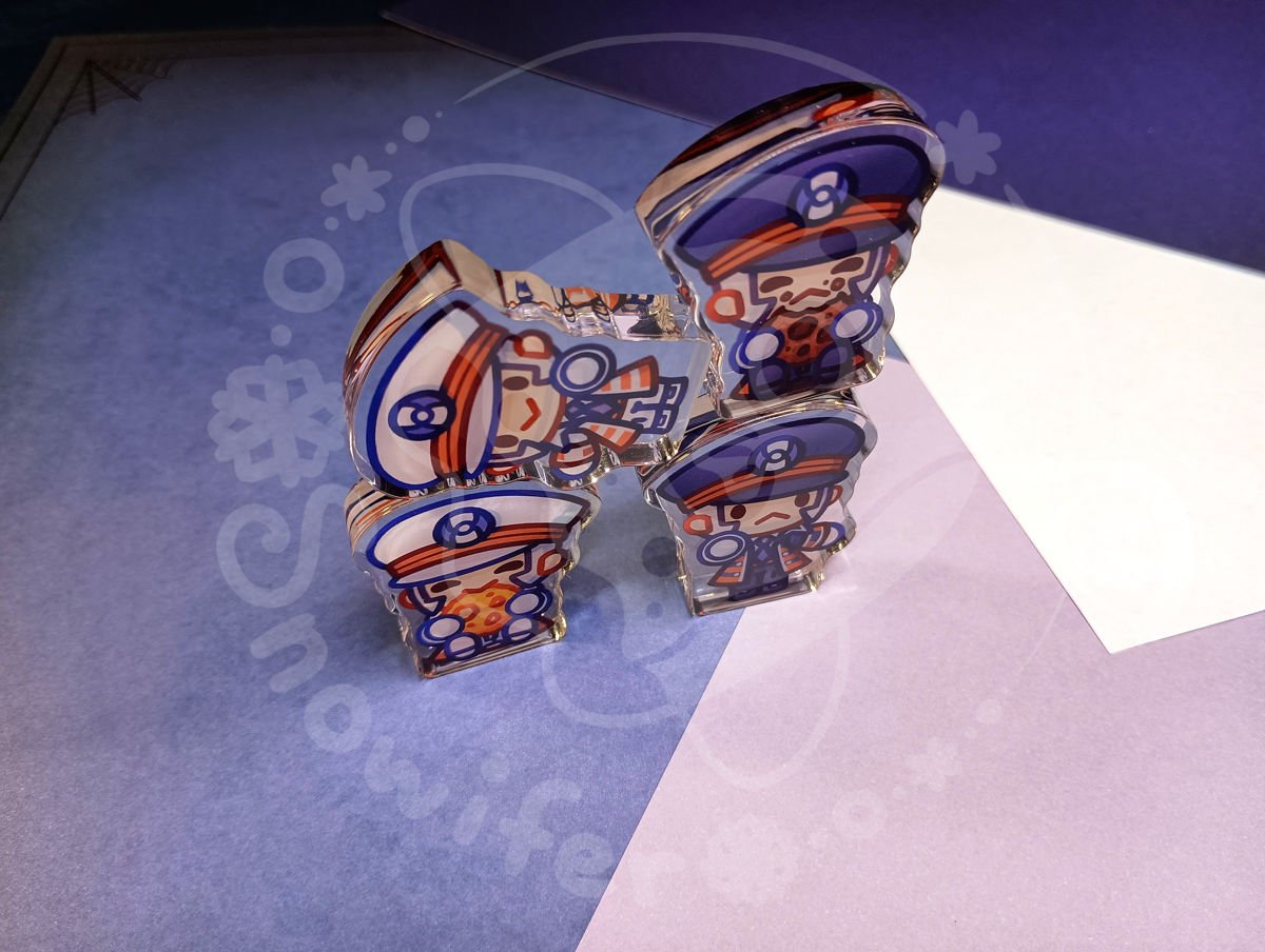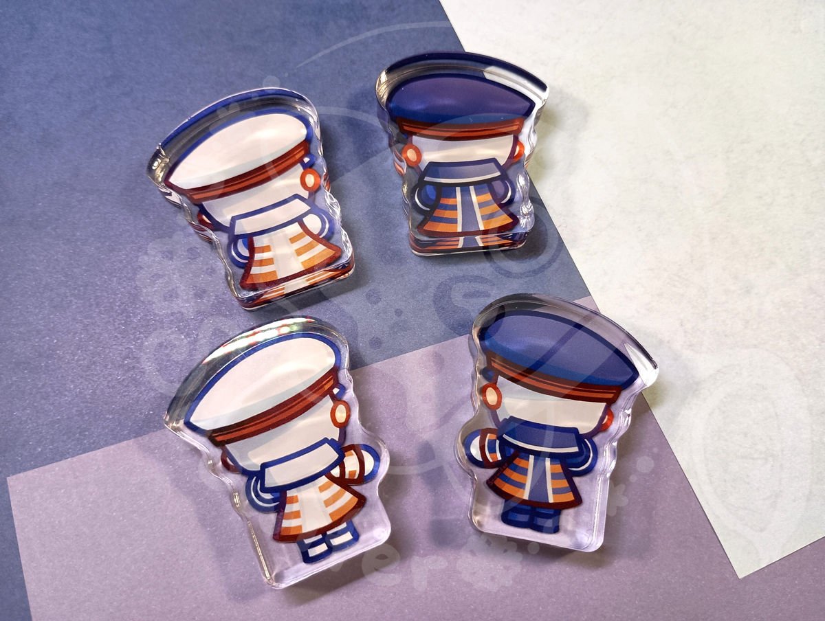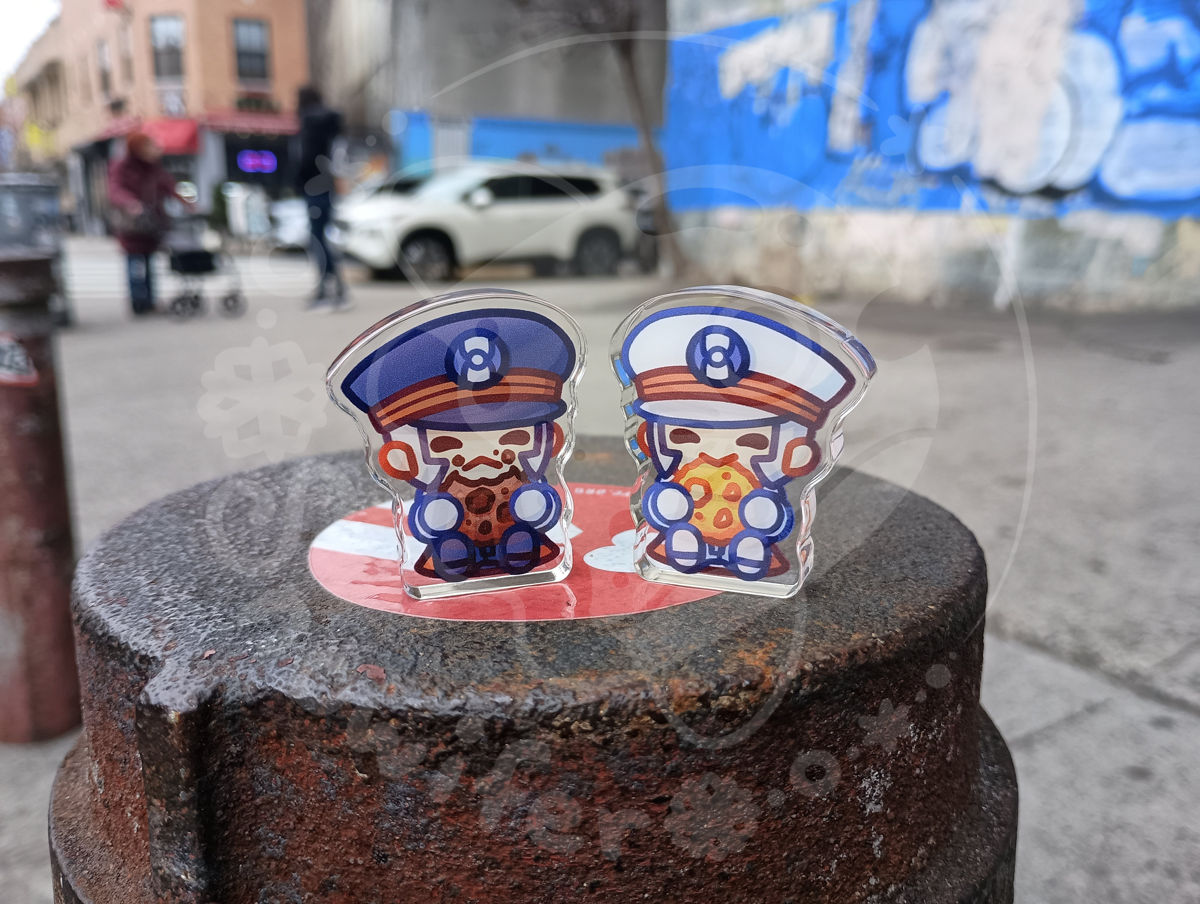 Thick chibi standees of Ingo and Emmet in their classic pointing pose and eating cookies!