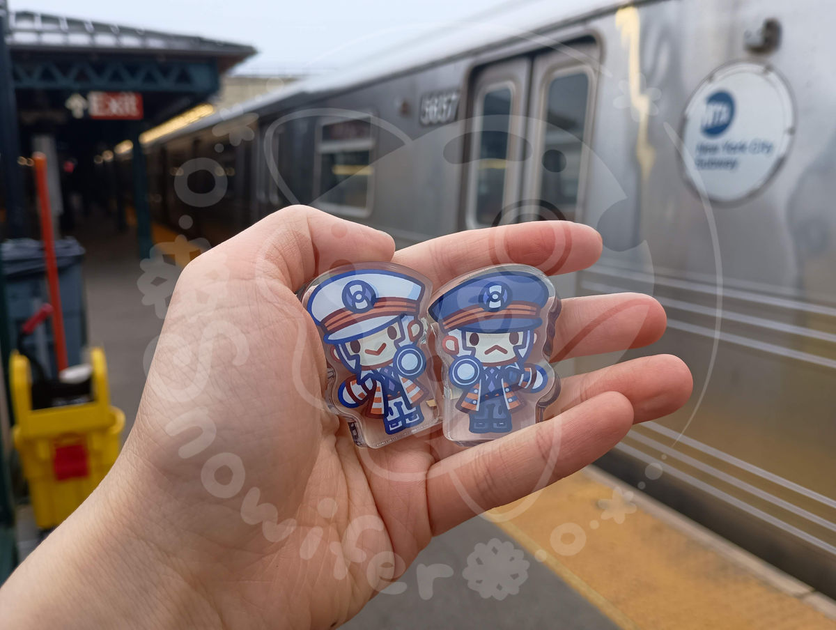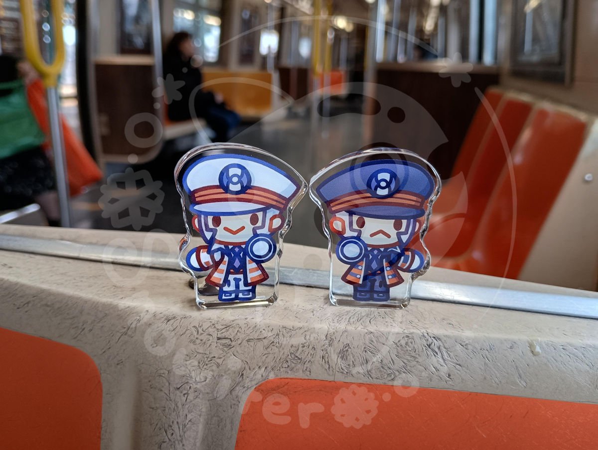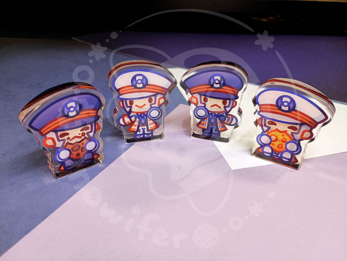 Thick chibi standees of Ingo and Emmet in their classic pointing pose and eating cookies!