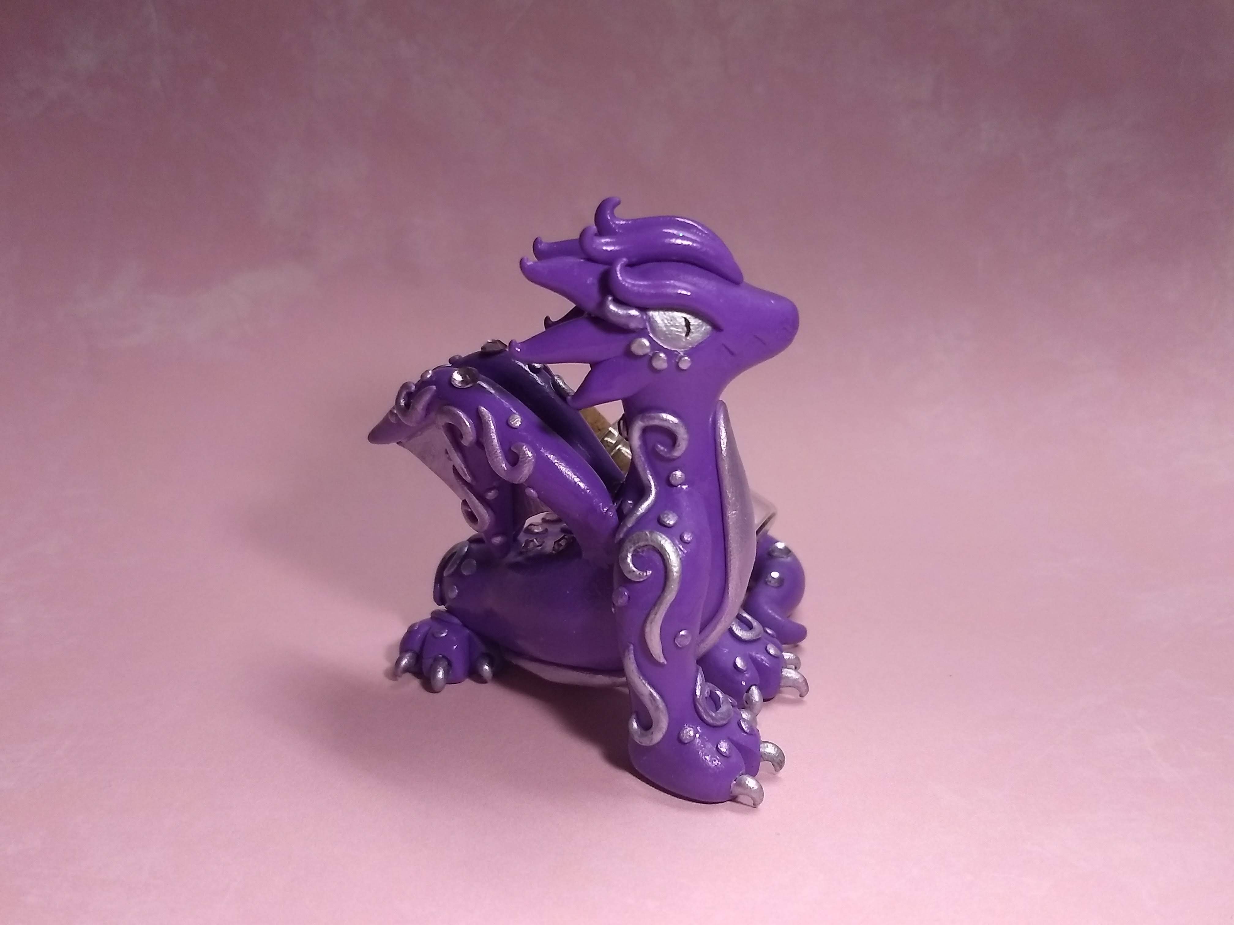 A one of a kind dragon handmade from polymer clay. Painted with acrylic paint and sealed with varnish.