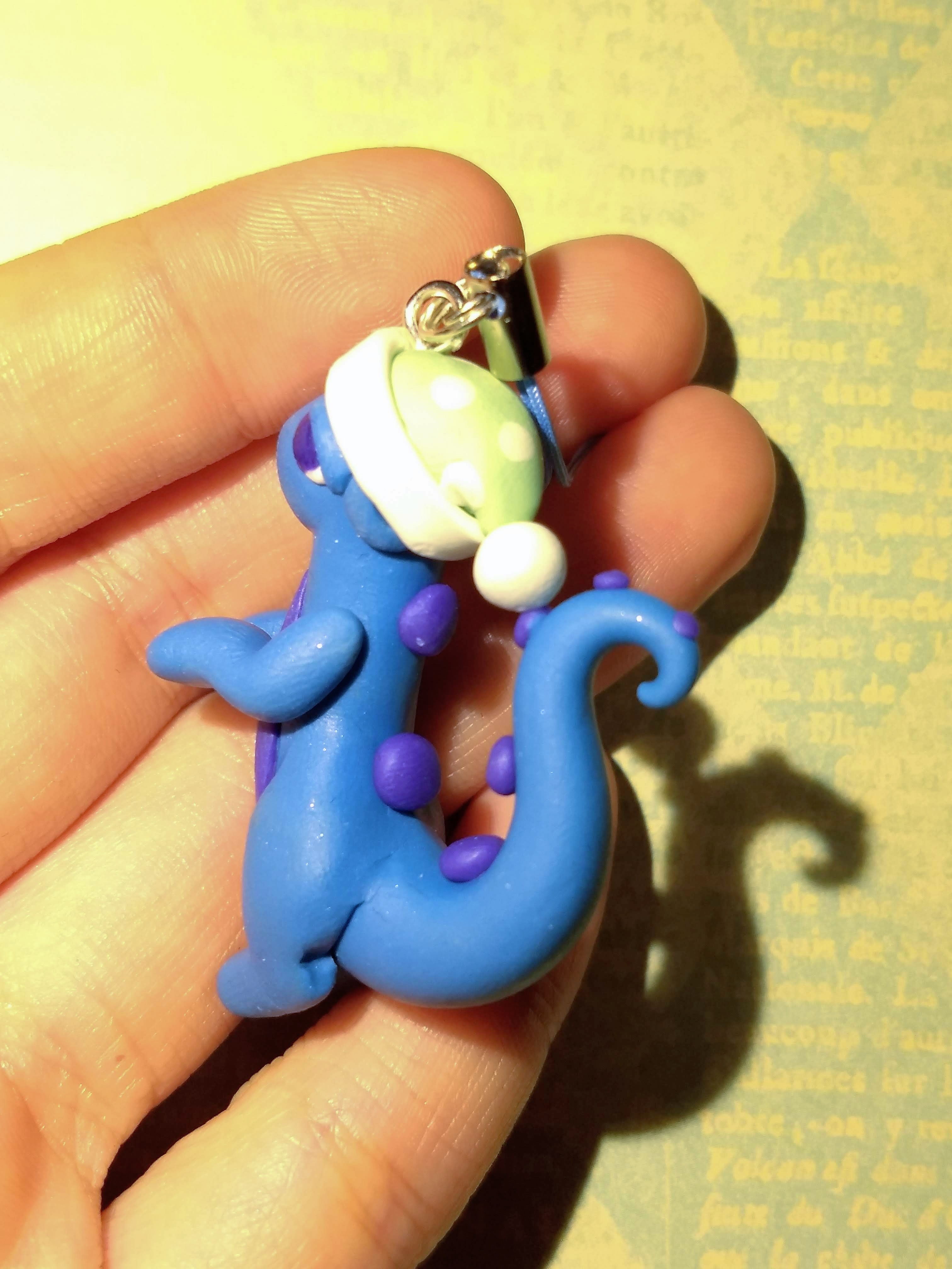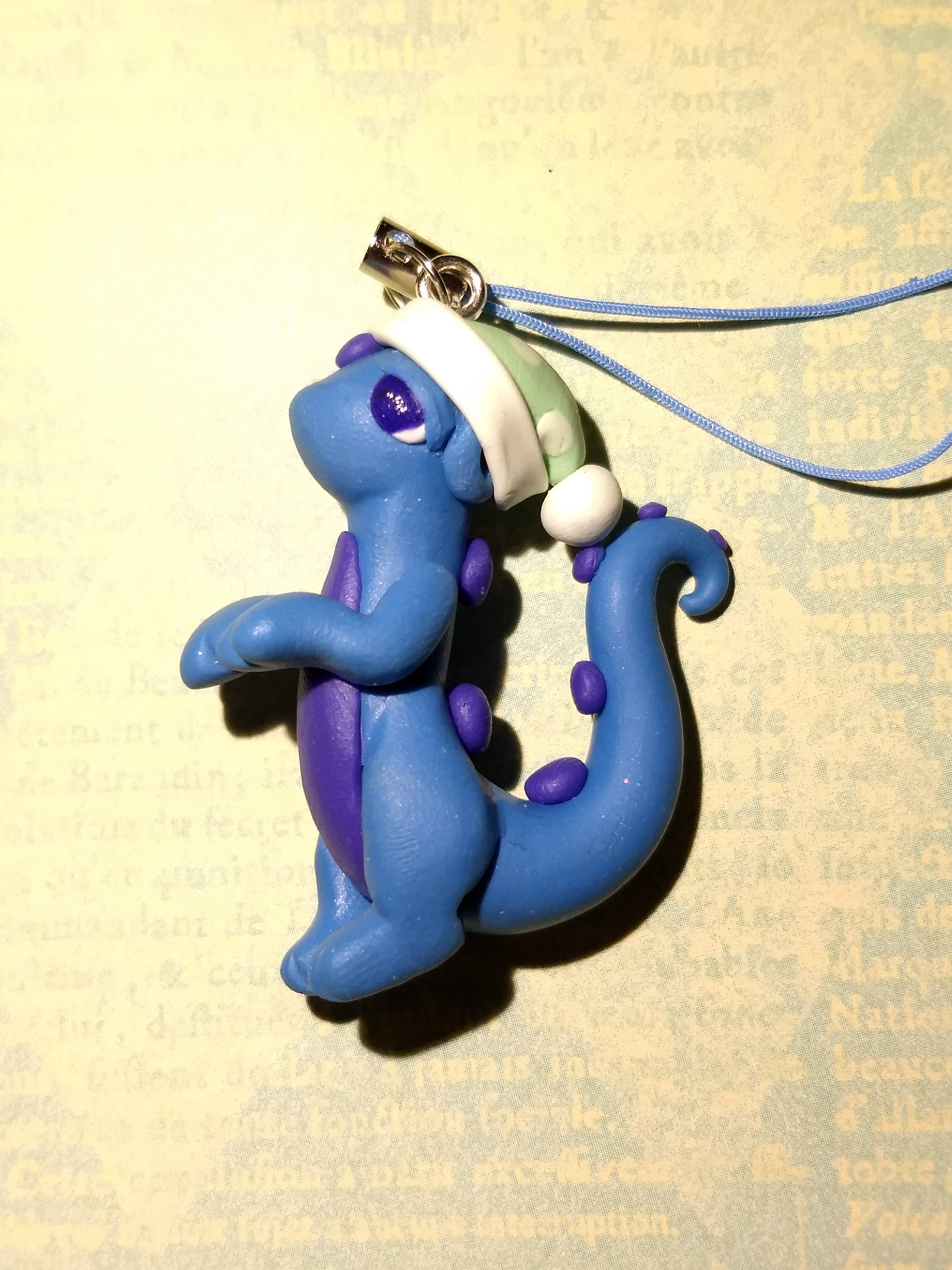 A dragon charm handmade from polymer clay. This one wears a cute sleeping cap and wants a good night's sleep.