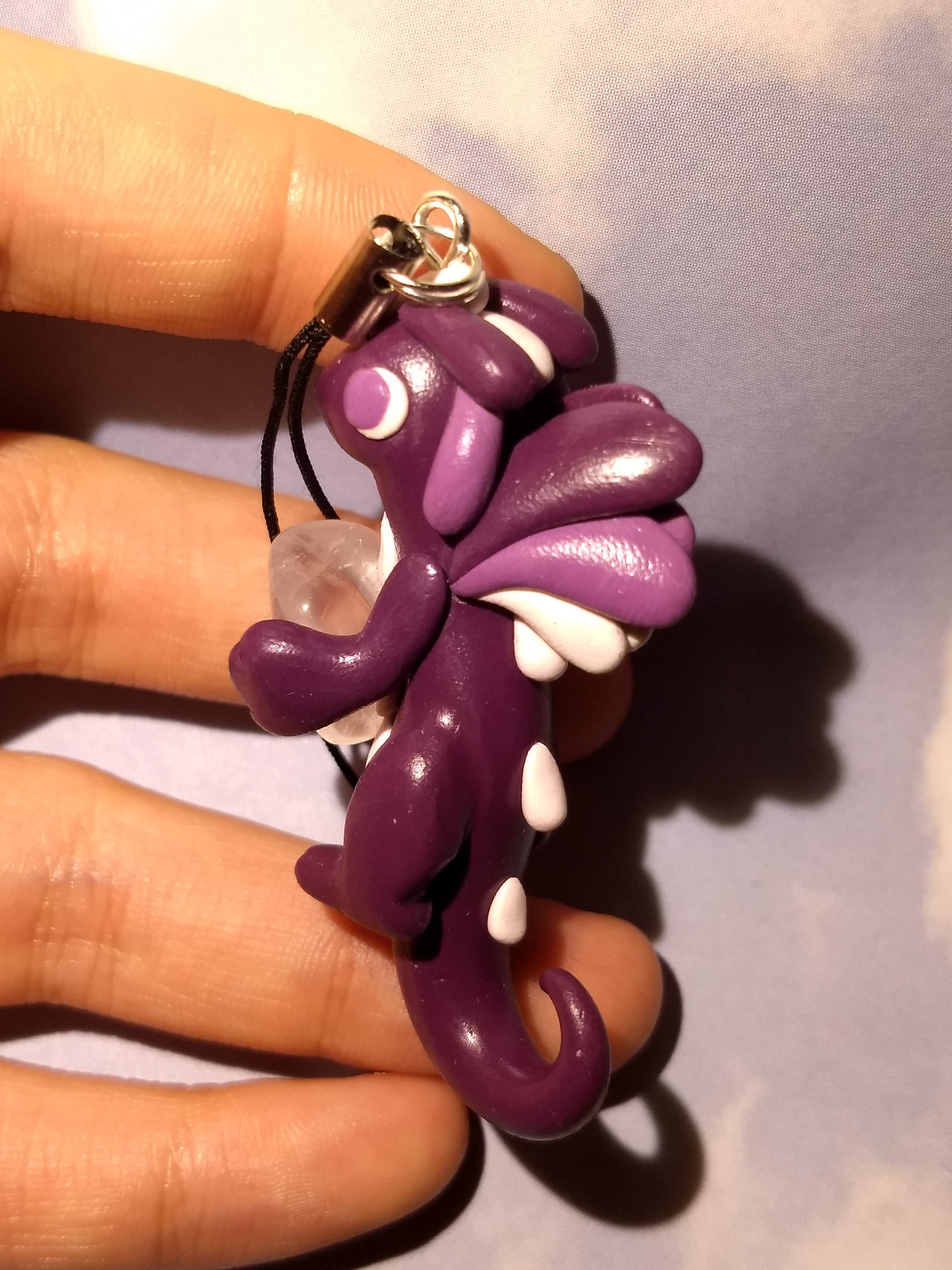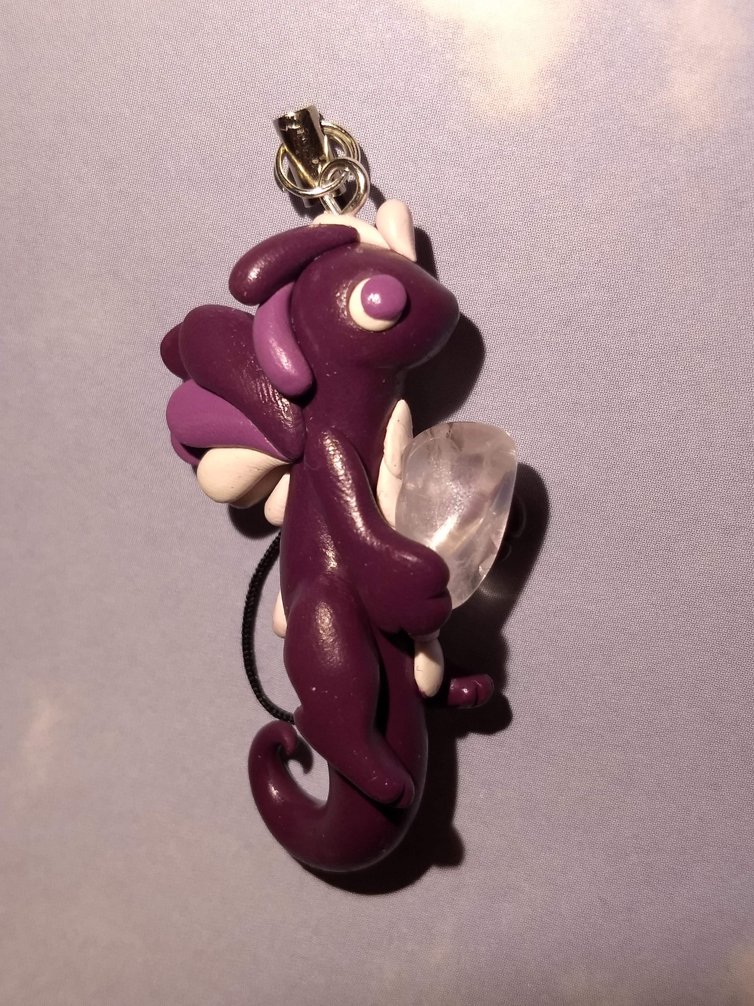 A dragon charm handmade from polymer clay. This one features a curved teardrop shape.