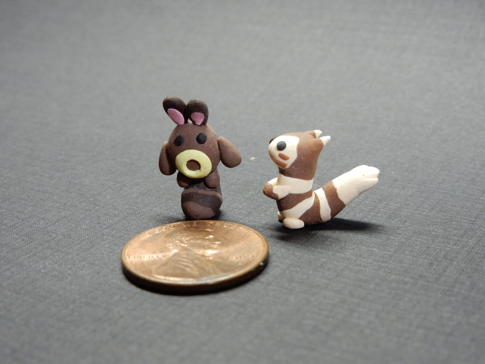 Tiny pokemon handmade from polymer clay. Sentret and Furret.