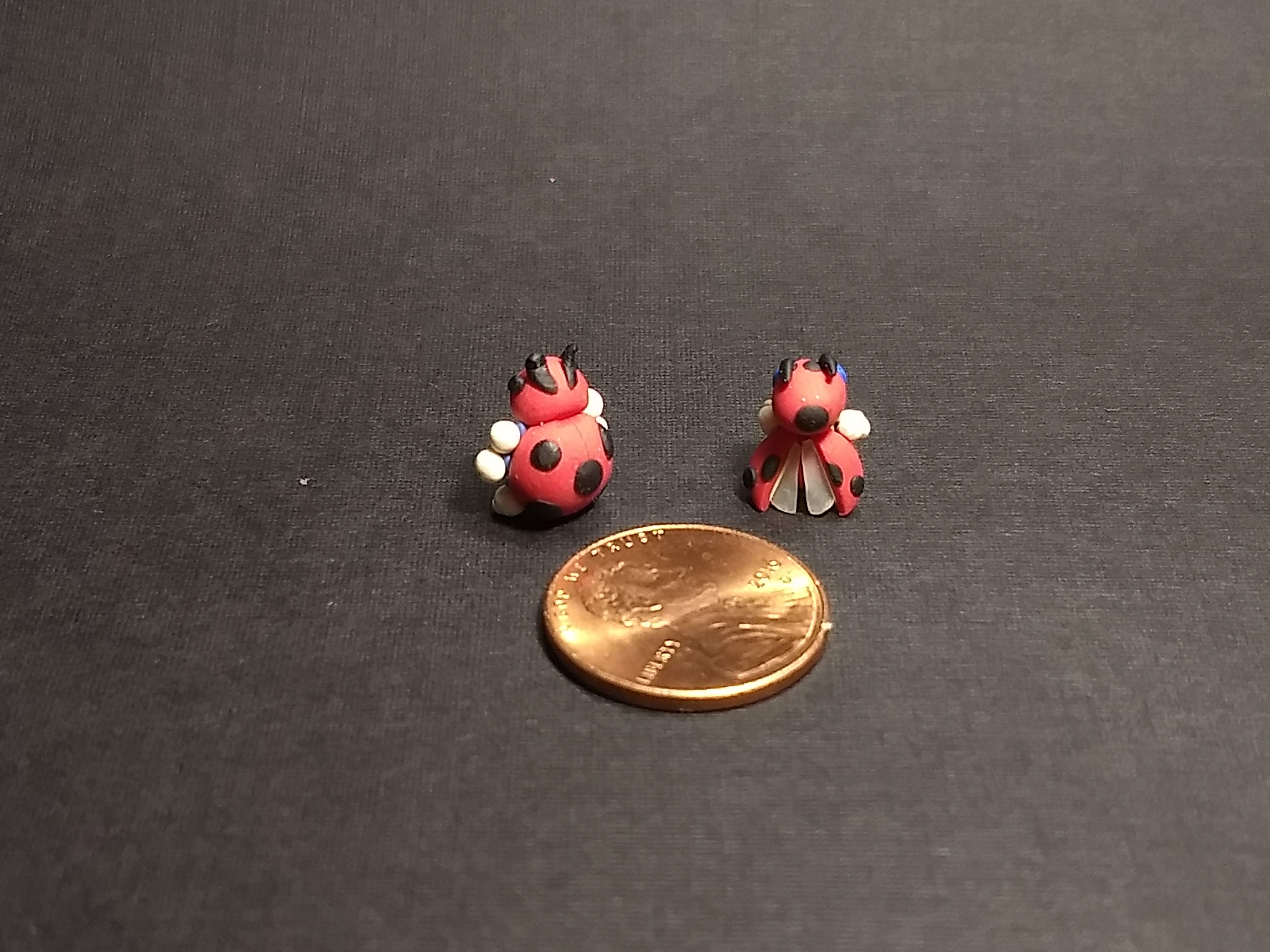Tiny Pokemon handmade from polymer clay. Ledyba and Ledian