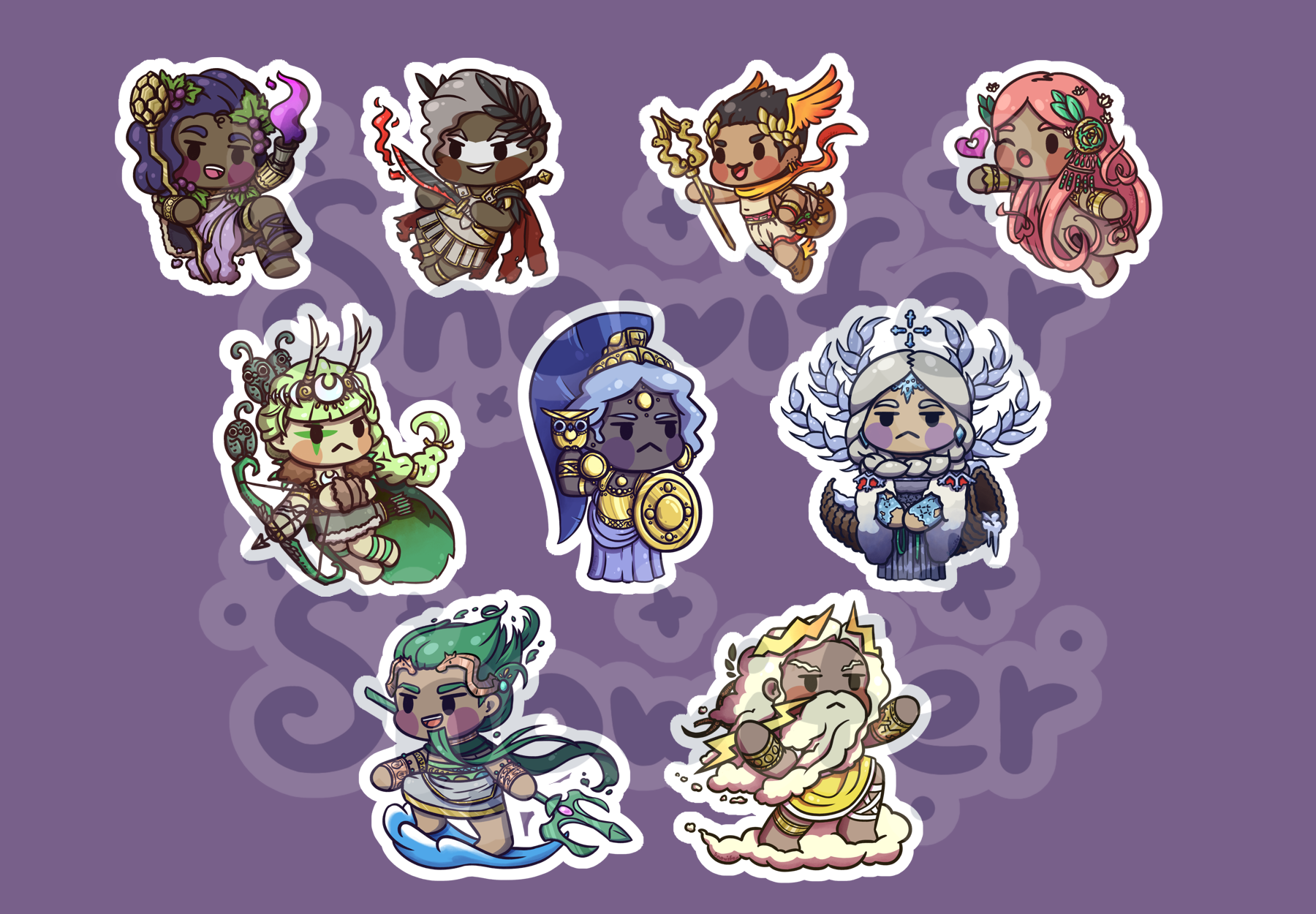 A chibi sticker bundle that includes all of the Olympic gods in Hades! Colors may vary slightly from the photos.