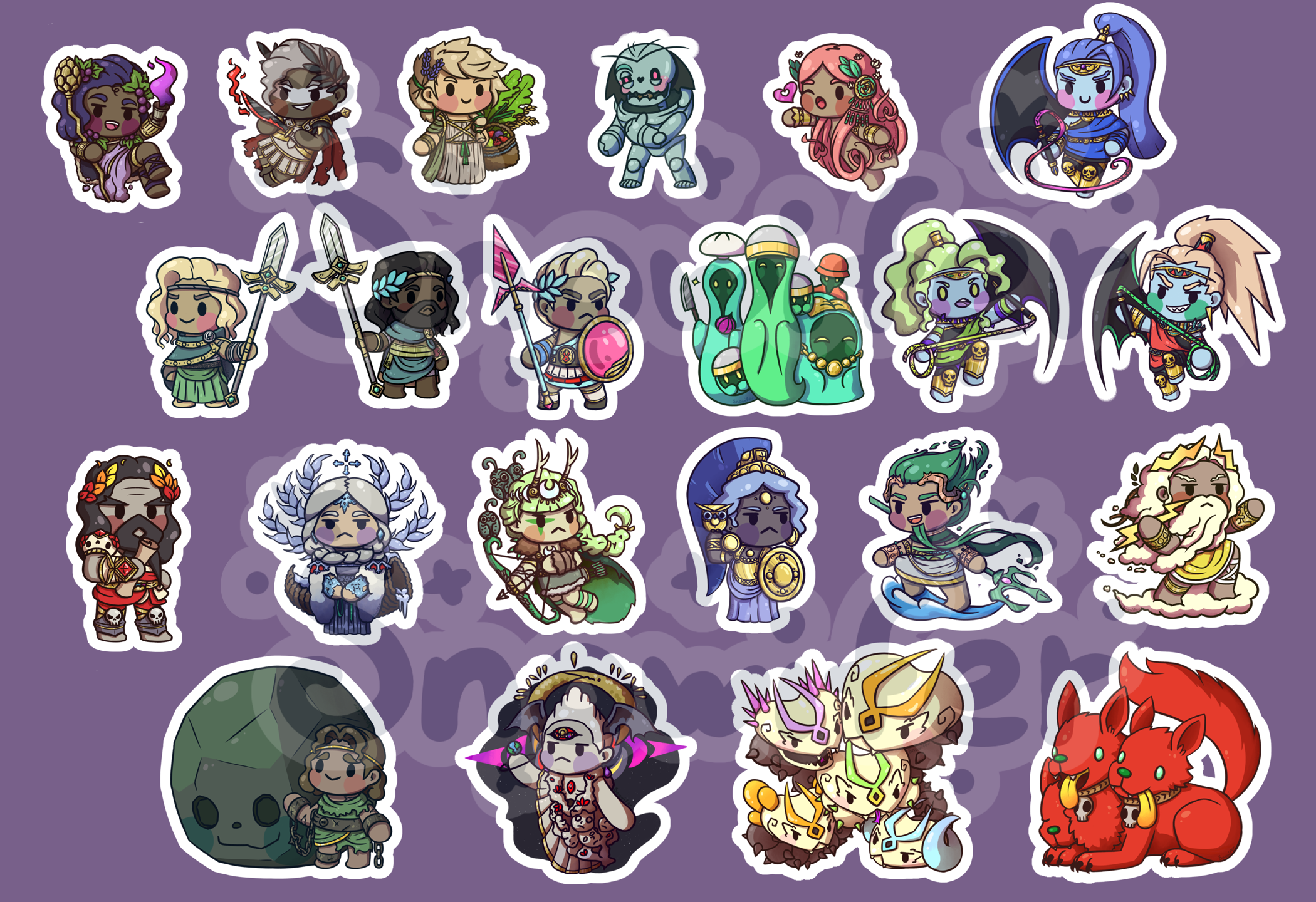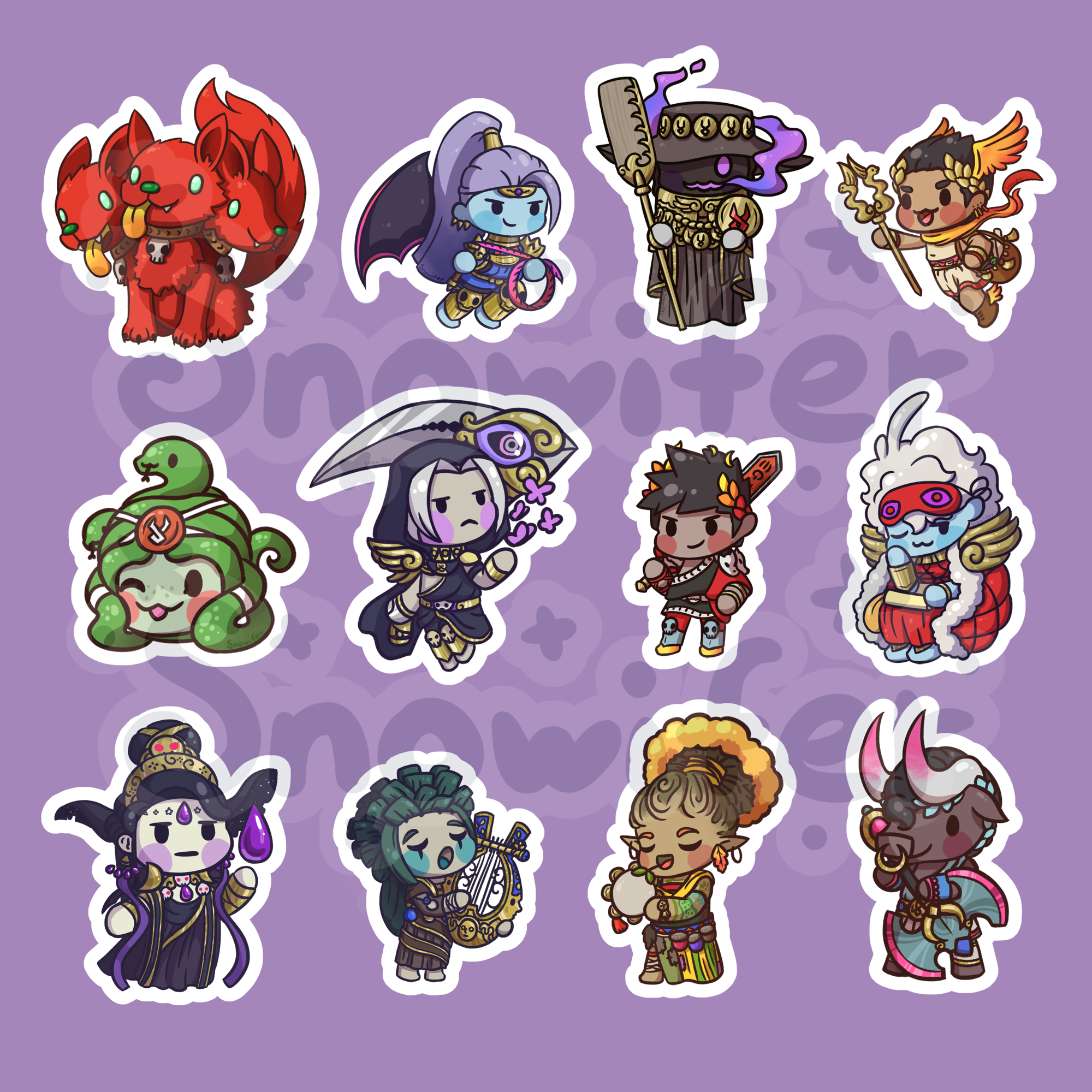 A chibi sticker bundle that includes all of the characters in Hades! Colors may vary slightly from the photos.
