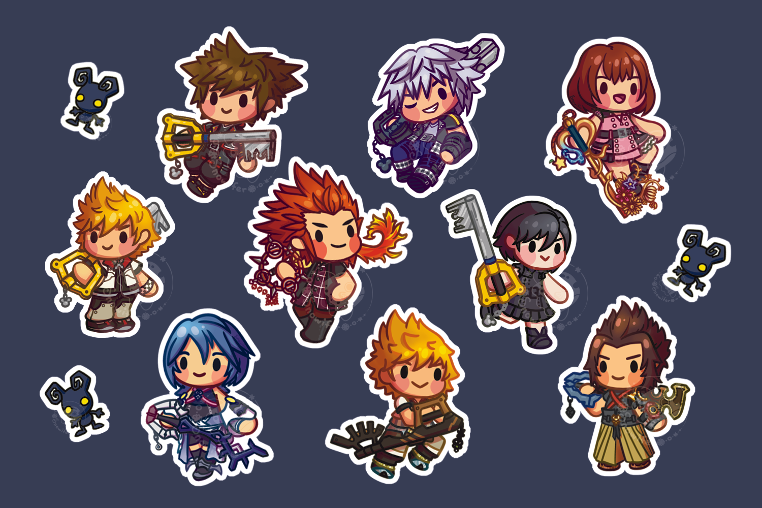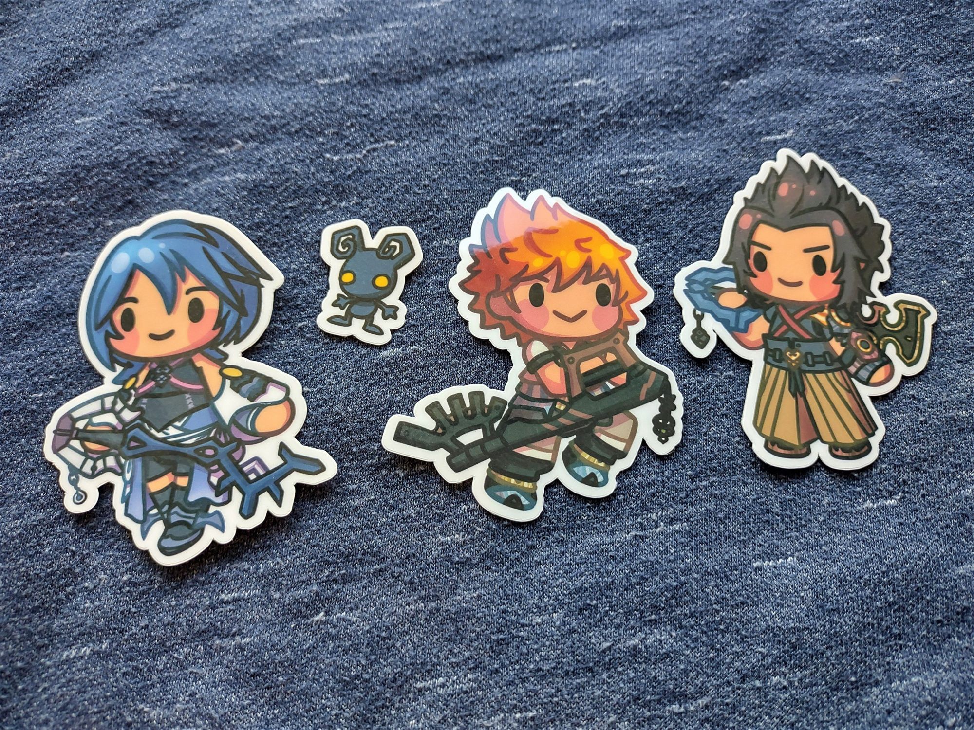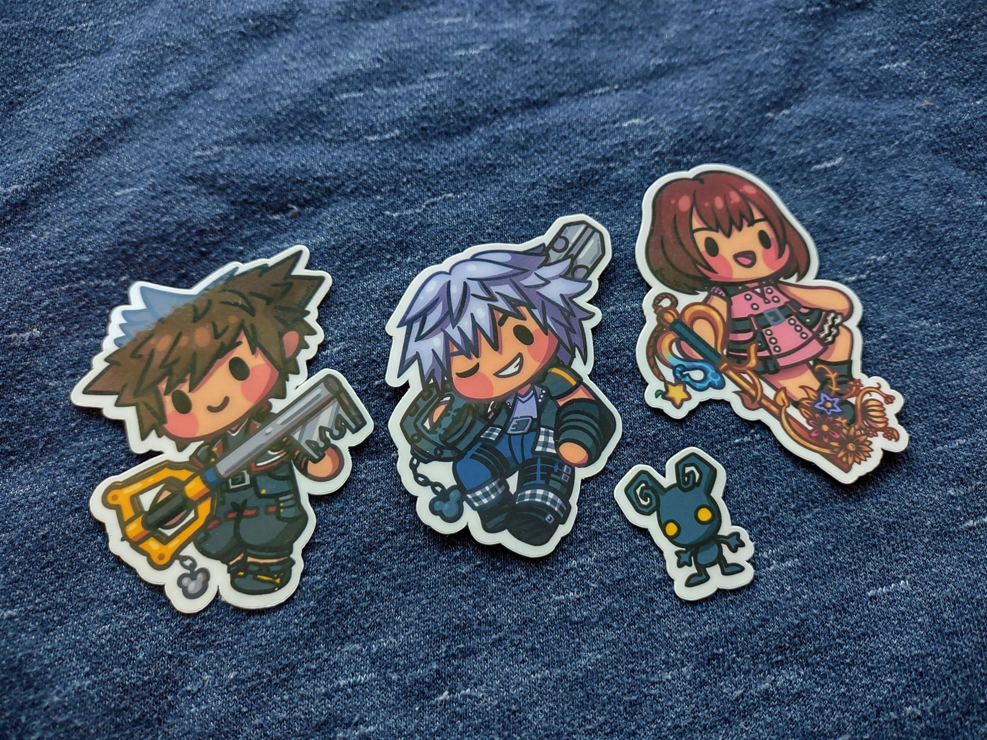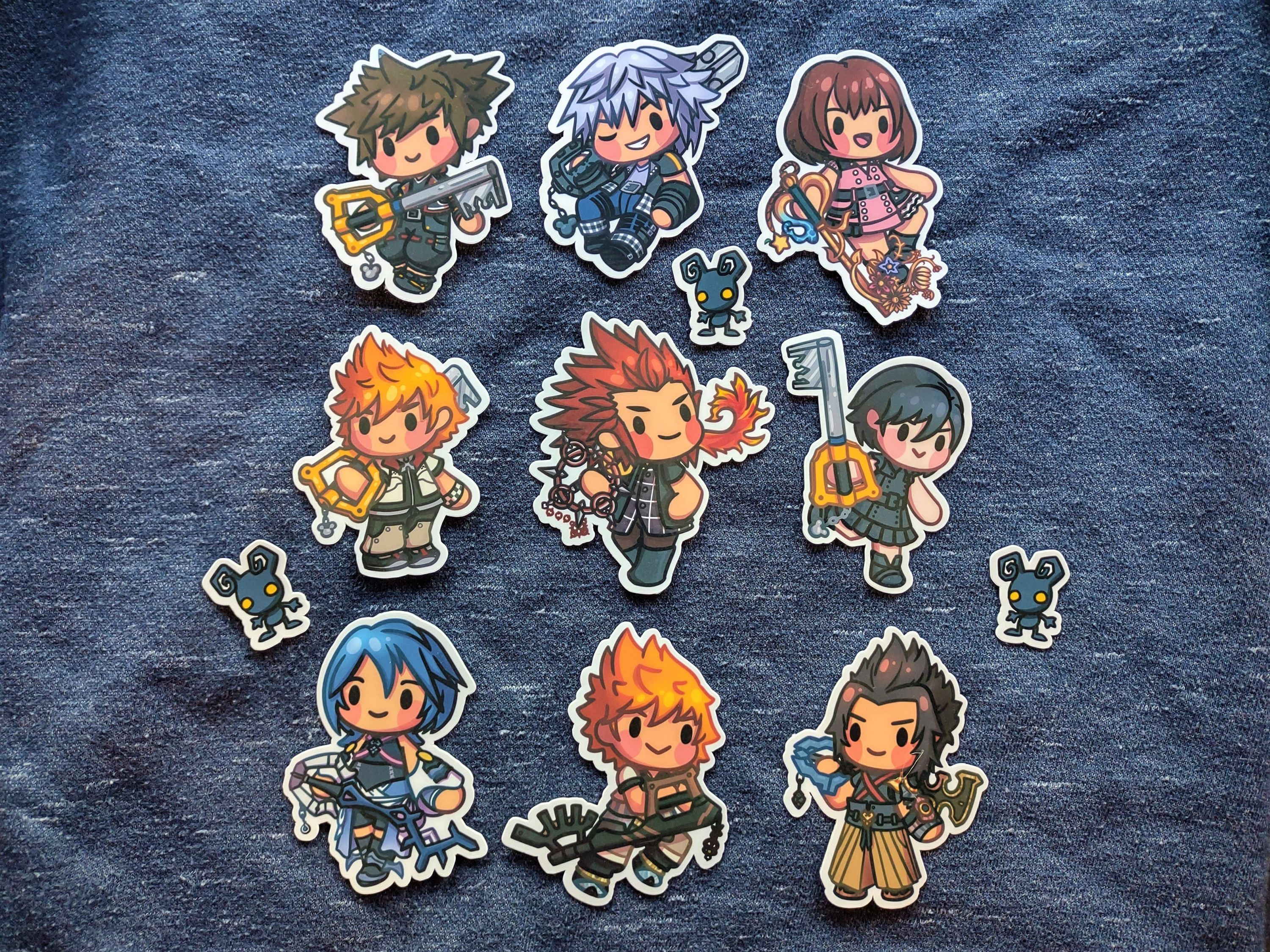 Chibi stickers of the characters from Kingdom Hearts. Orders of 3+ stickers receive a 1in shadow sticker! Make sure you select the character(s) you want with the dropdown. Colors may vary slightly from the photos.