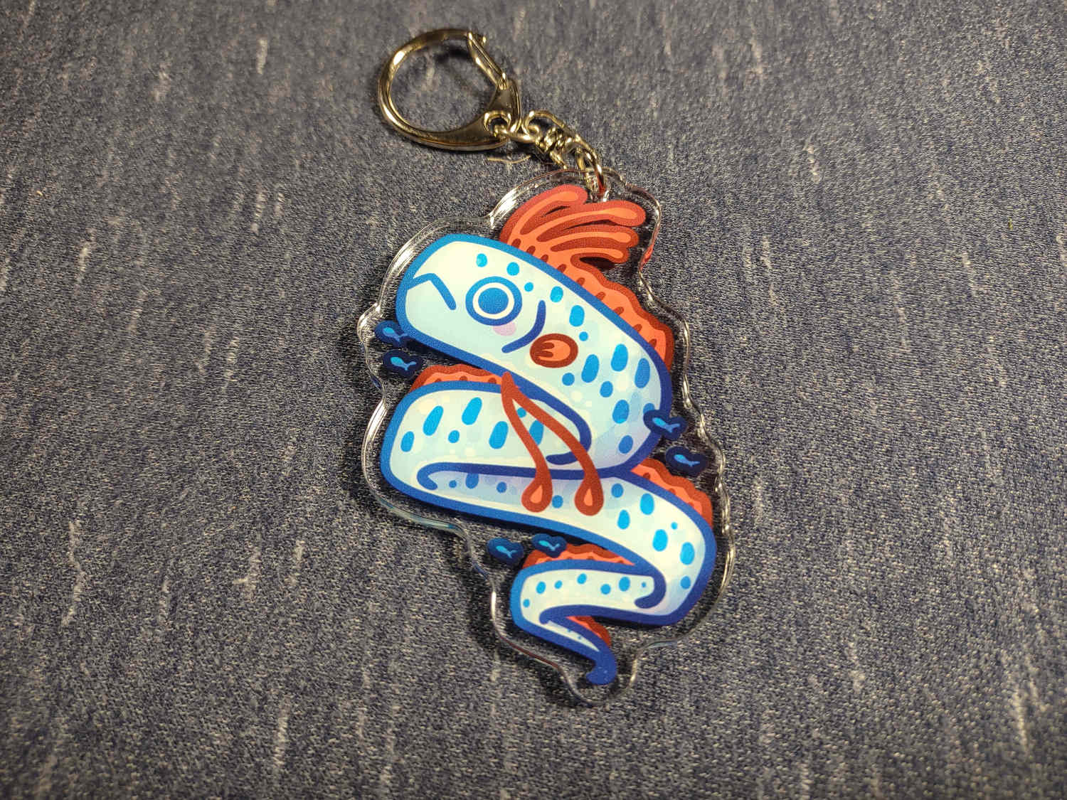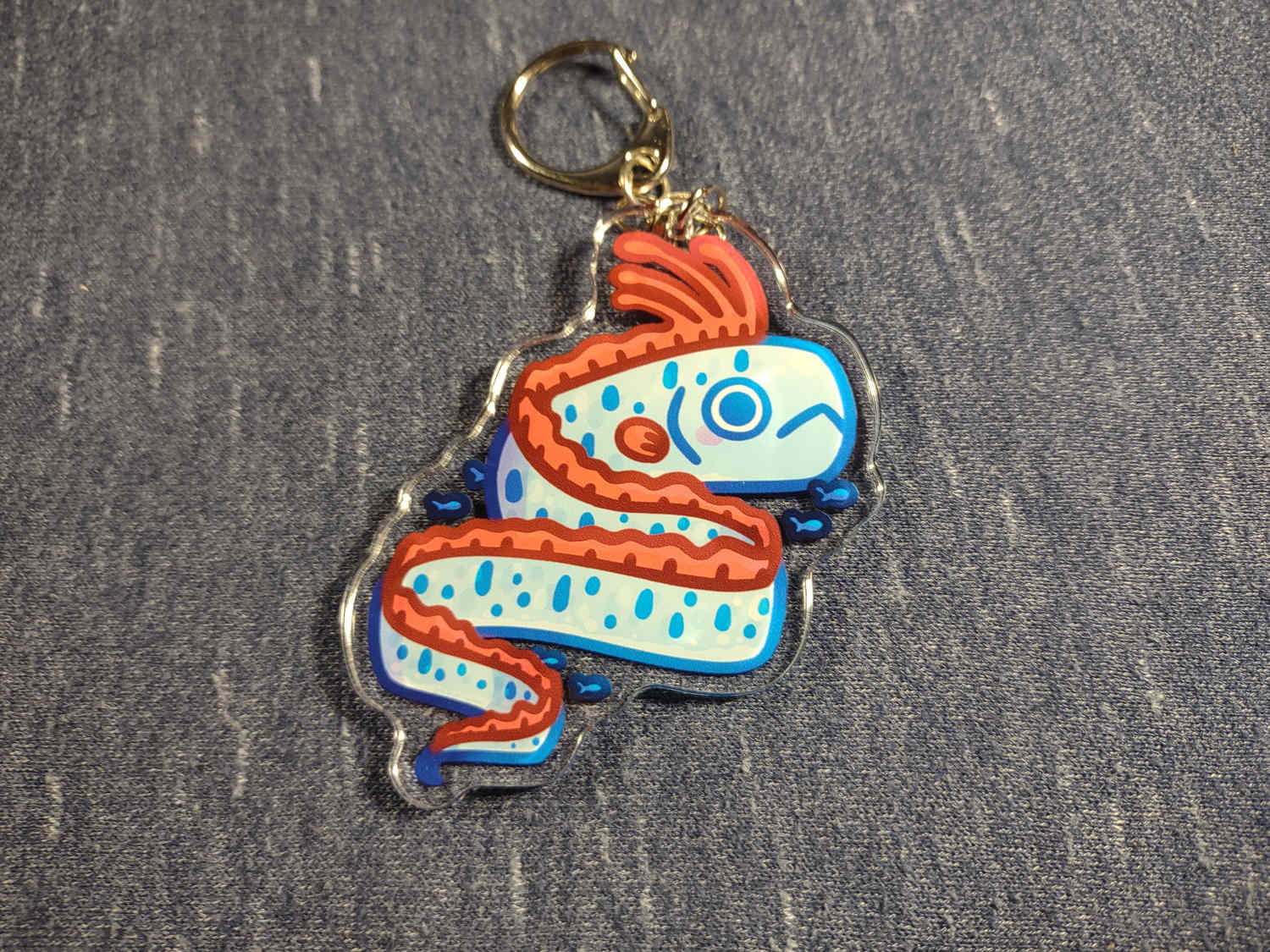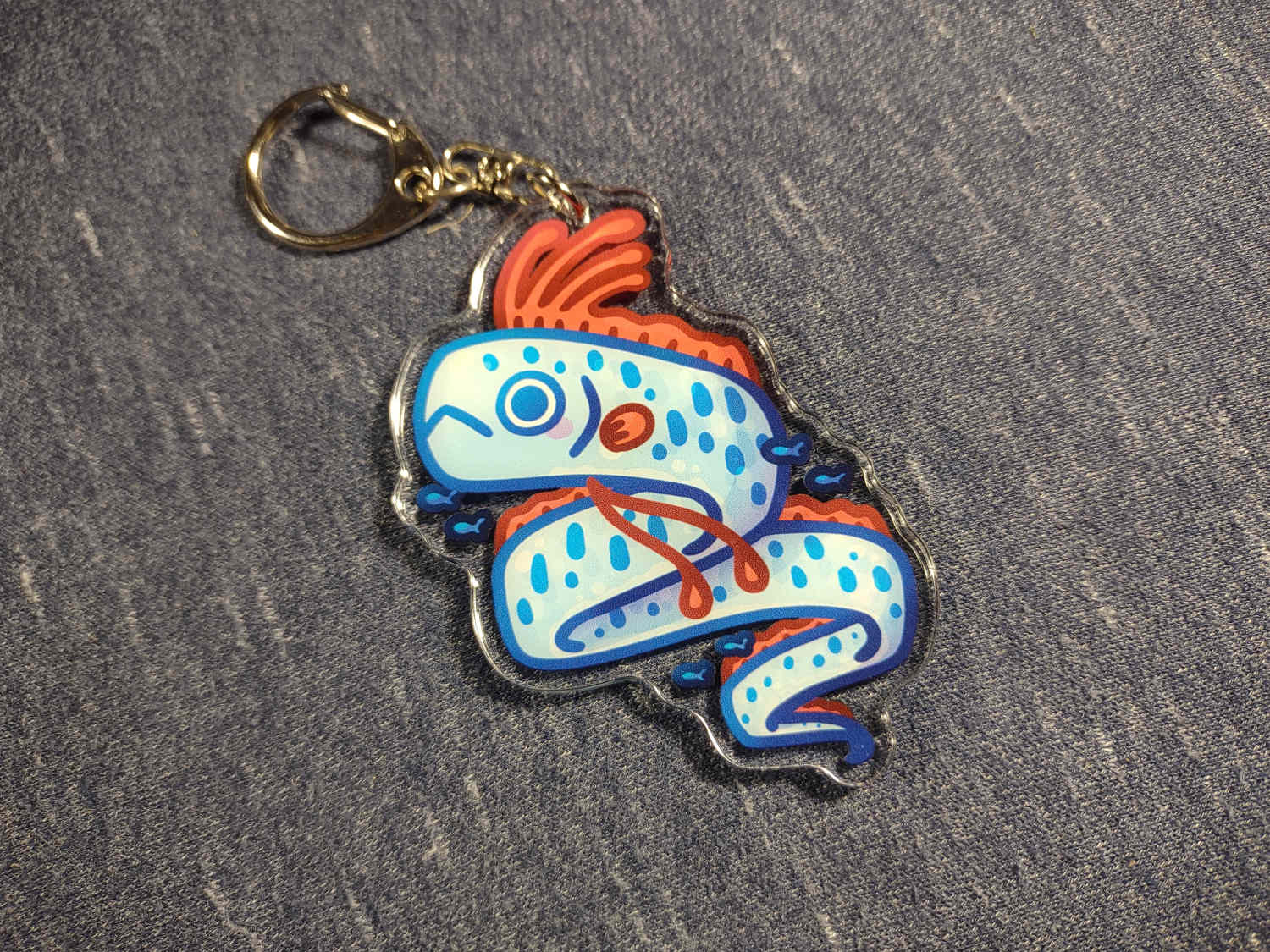 An acrylic keychain of an oarfish.