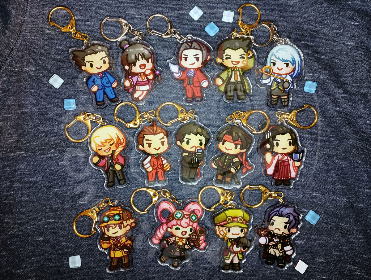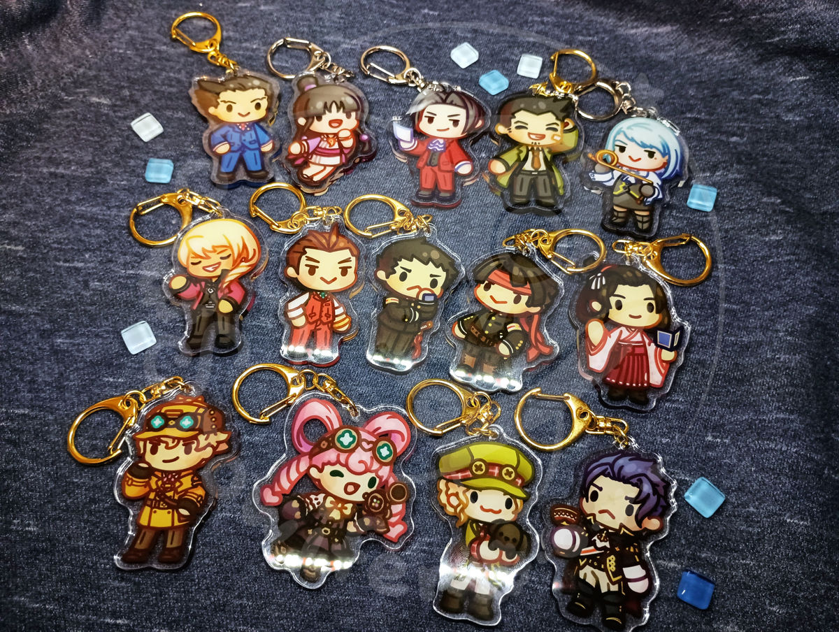 Chibi keychains featuring characters from the mainline Ace Attorney series as well as Great Ace Attorney (Dai Gyakuten Saiban)!