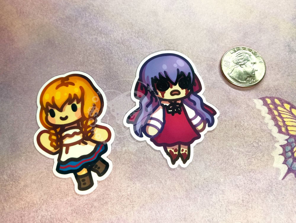Chibi stickers of Ellen and Viola from Witch's House Be sure to pick which one(s) you want from the dropdown.