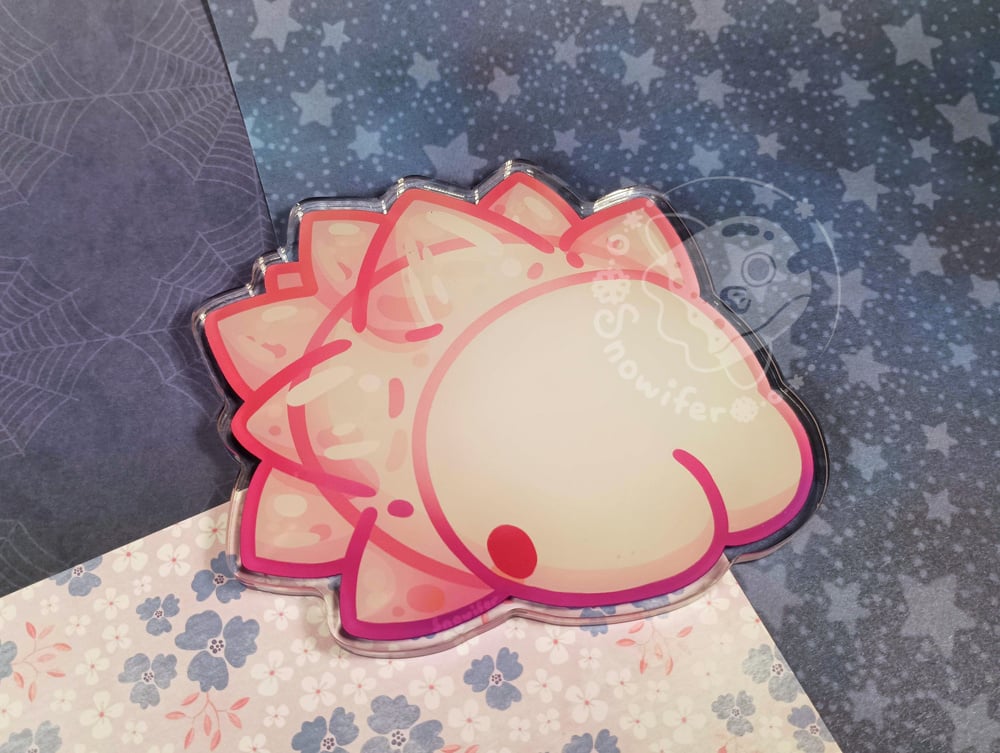 Acrylic coaster of a snom with a pink snom on the backside